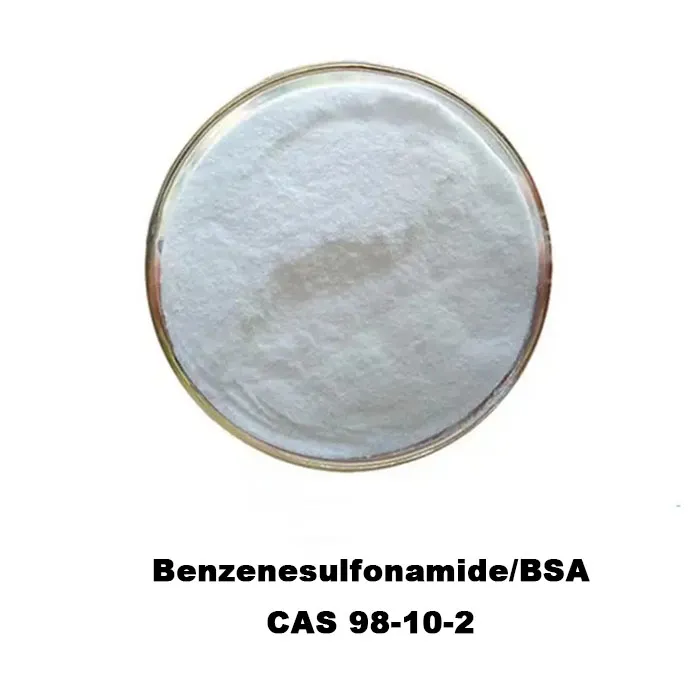 Benzenesulfonamide, referred to as BSA, is an organic compound with the appearance of colorless crystalline powder. It is soluble in water, alcohol and ether solvents. It is relatively stable under normal physical and chemical conditions. BSA is an inhibitor of human carbonic anhydrase B2. Turunan Benzenesulfonamide efektif dalam pengobatan penyakit proliferatif seperti kanker . juga digunakan dalam sintesis pewarna, fotokimia dan desinfektan .