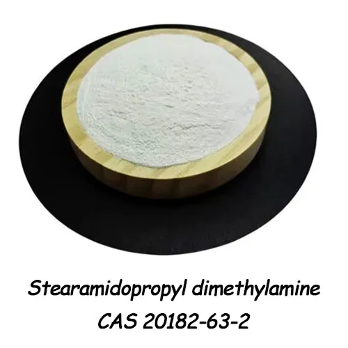 Stearamidopropyl Dimethylamine adalah zat padat, biasanya berbentuk kristal atau bubuk berwarna putih, tidak berbau atau dengan sedikit bau khas. Ia memiliki sifat pelumasan dan antistatis yang baik. Dalam produk perawatan rambut, sering digunakan sebagai bahan antistatis dan pelembut untuk membantu meningkatkan kehalusan dan kilau rambut.