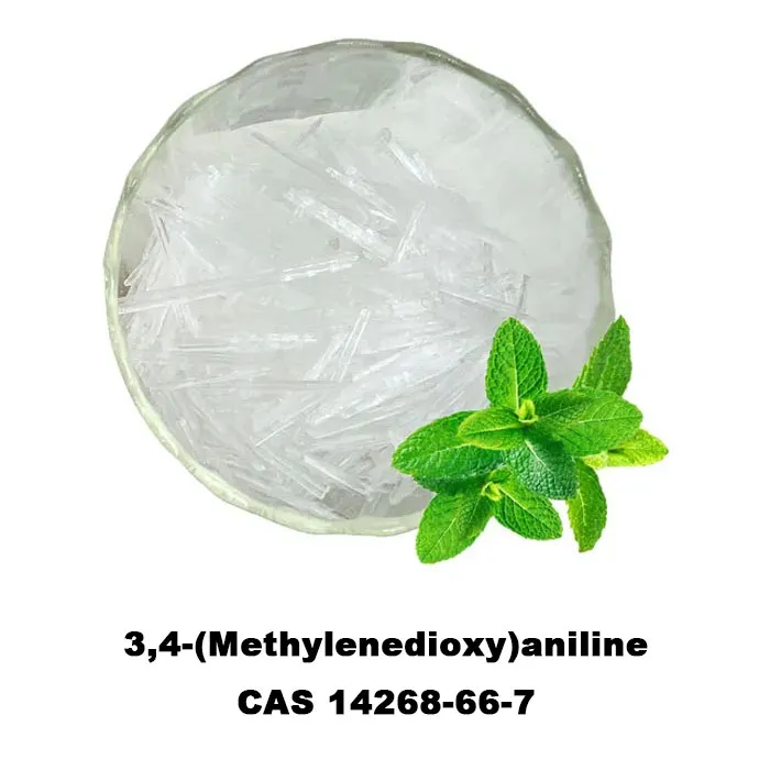 3,4-(Methylenedioxy)aniline, also known as MDA, is an organic compound. It is a colorless or light yellow solid that can form crystals. It is soluble in organic solvents such as ethanol, acetone and dimethylformamide. Its molecular formula is C7H7NO2, and its molecular weight is 137.14 g/mol. Its melting point is 38-41℃, its boiling point is about 140℃(under reduced pressure), and its density is about 1.33 g/cm³. MDA is easily oxidized by air and its color deepens (it needs to be stored in lingkungan yang diisi nitrogen, tertutup dan tahan cahaya). Ini terutama digunakan sebagai perantara untuk wewangian dan bahan bakar.